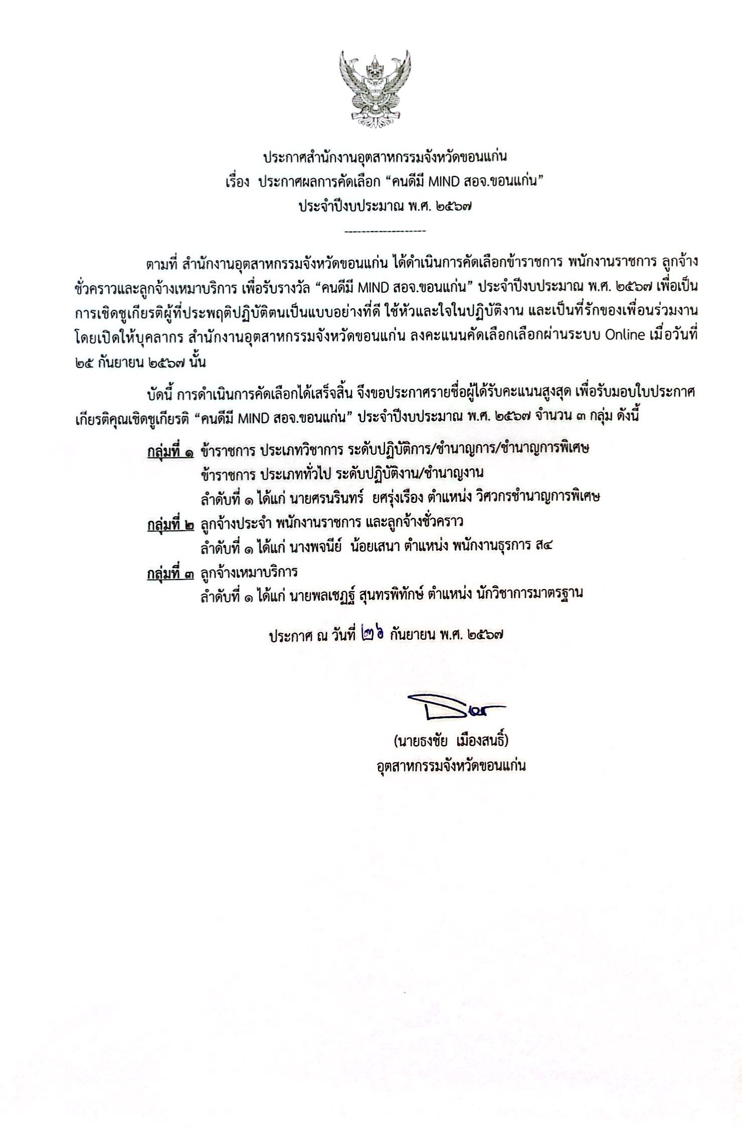 ของสำนักงานอุตสาหกรรมจังหวัดขอนแก่น ประจำปีงบประมาณ พ.ศ. 2567